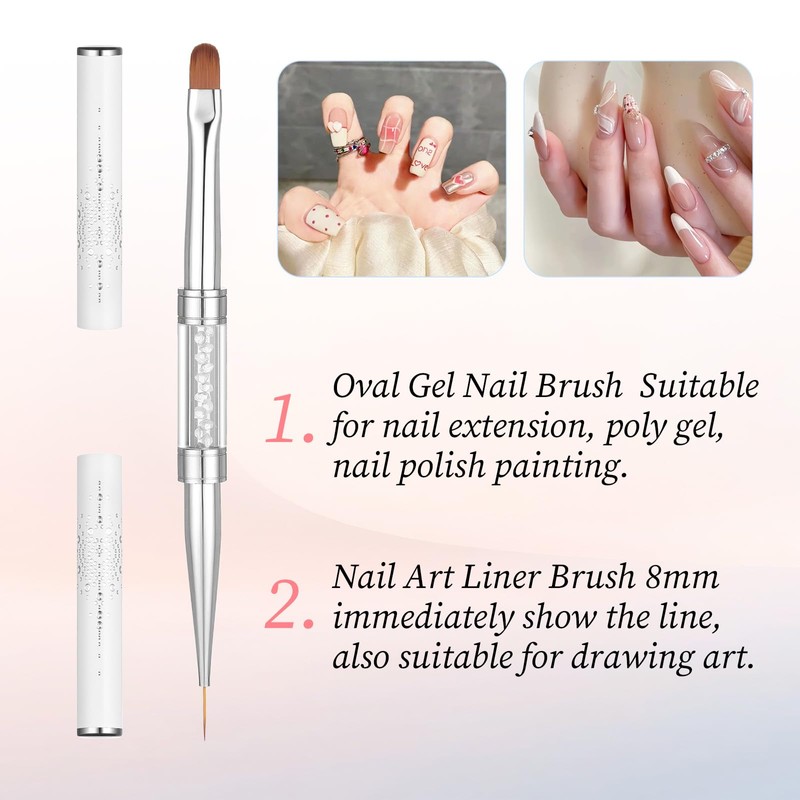 - 【Easy to Use】Designed for both novices and professionals, the oval and thin brush heads excel in nail extensions, polymer gel applications, and fine line drawing. The 0.9cm flat brush creates flawless builder gel bases, while the 1.1cm tapered end enables precise detailing for complex designs.