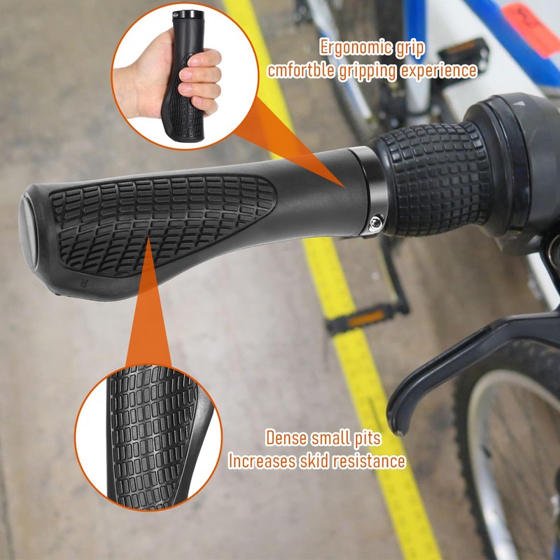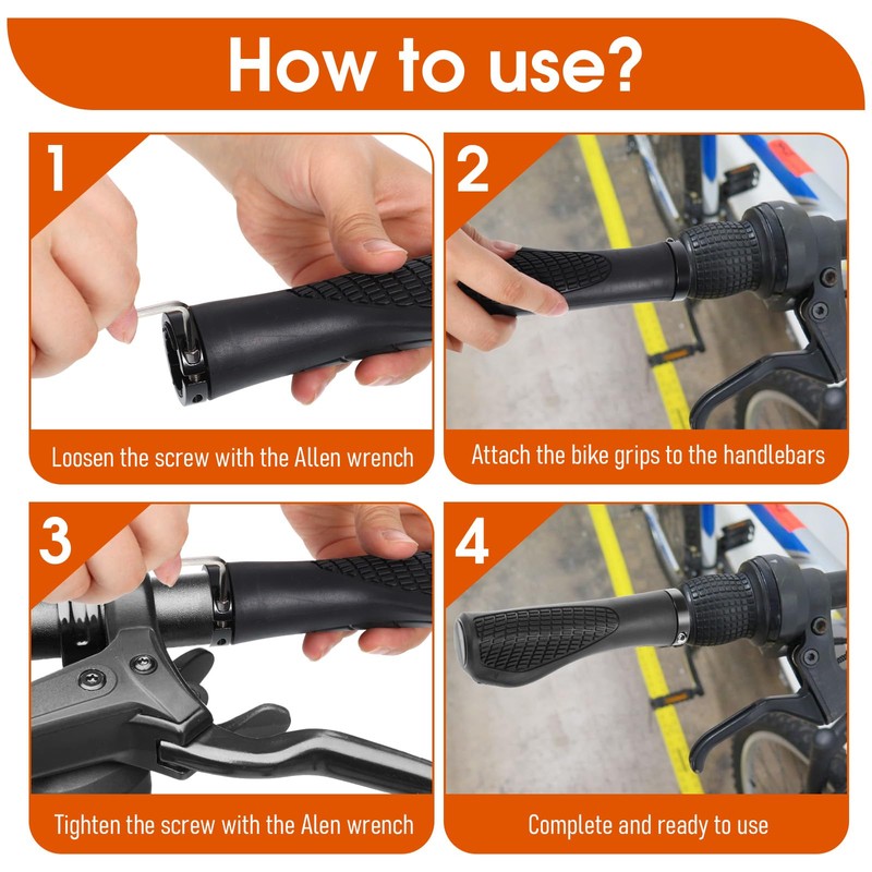 - 【Tool-Included Installation】The bicycle handlebar grips set comes with a hexagonal wrench and an aluminum alloy locking ring, which is easy to install and remove, enable 3-minute setup. The aluminum alloy locking ring can lock the handlebar handlebar during installation to prevent it from falling off and slipping. It is safe and stable, and easy and convenient to assemble, allowing you to enjoy the riding fun more comfortably.