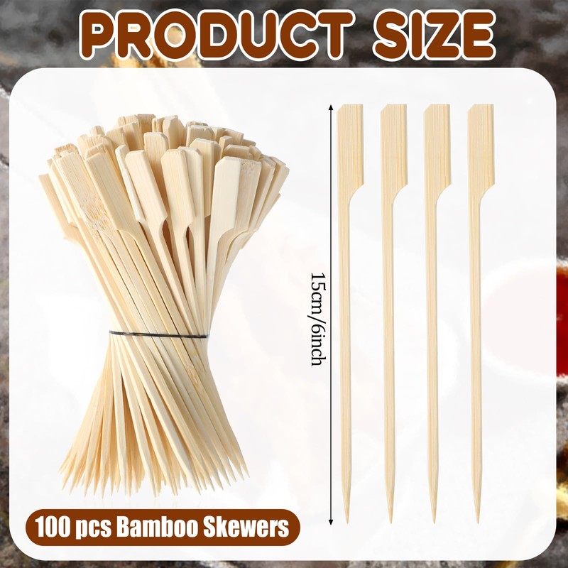 • Value set: the package contains 100 bamboo skewers for grilling. Cocktail toothpicks for grilling are easy to poke through the food without cutting or splintering, and these wooden skewers are large enough for your small parties and events.