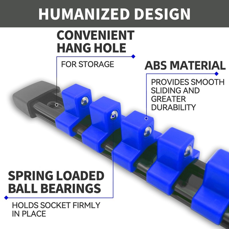- Convenient to Use: Removable end cap, easy to add or remove clips. Each clip features spring-loaded ball bearings that firmly hold the sockets in place, making it easy to find the right socket when you need it.
