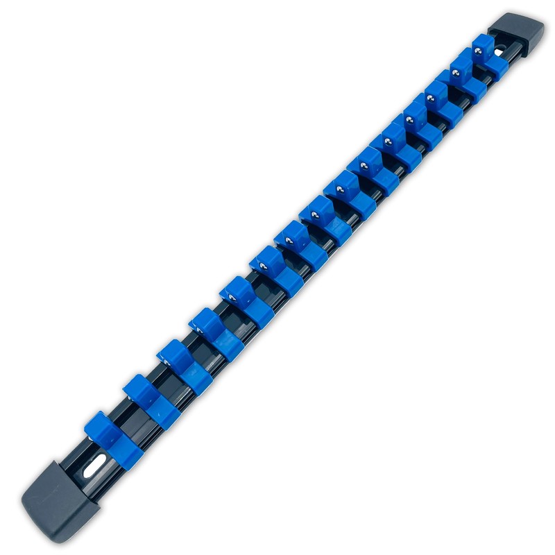 JIYOSE 3/8-Inch Drive ABS Socket Organizer, Heavy Duty Socket Racks, Socket Holder Kit 3/8-Inch x 15 Clips Premium Quality Socket Clip Rail Holder(3/8-Blue)