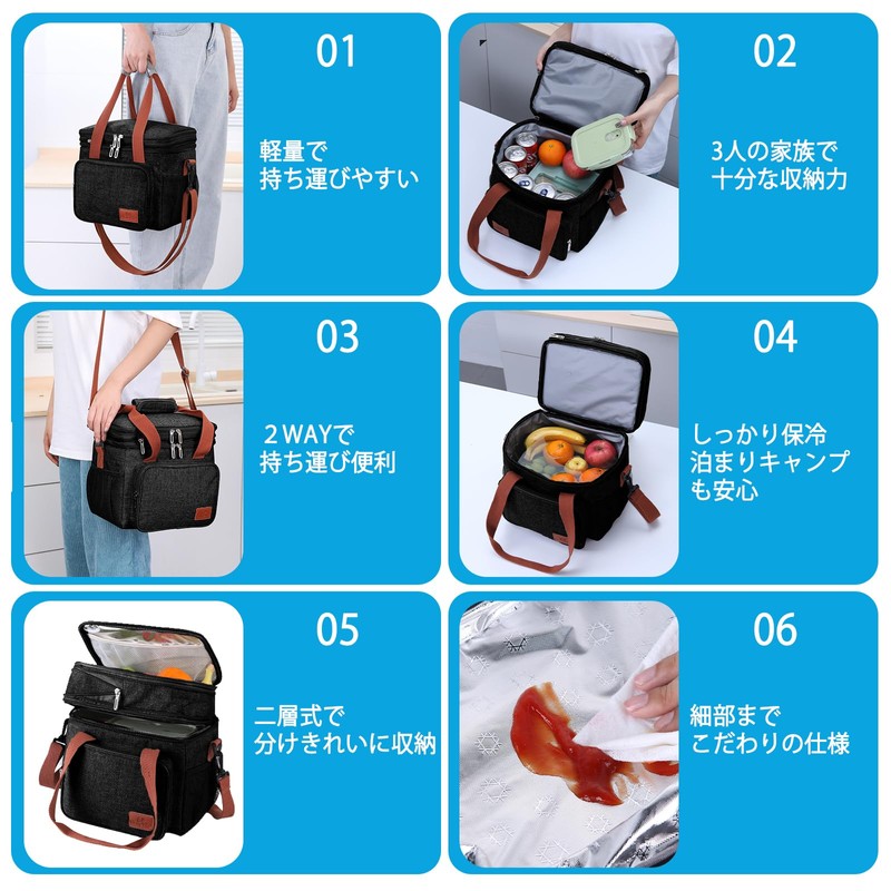 • (14L Capacity for Regular Use) Our coolers are not too large but the double layer design allows you to keep your drinks and fruits clean. The upper tier can store fruits and thin lunch boxes. The lower tier is deeper than the top and can be used to store large lunch boxes and drinks. All of our waterproof aluminum film allows you to pour water directly into it, so you can enjoy cold drinks anytime. With a capacity of 3.1 gal (14 L), it is recommended for outdoor activities such as one or two people