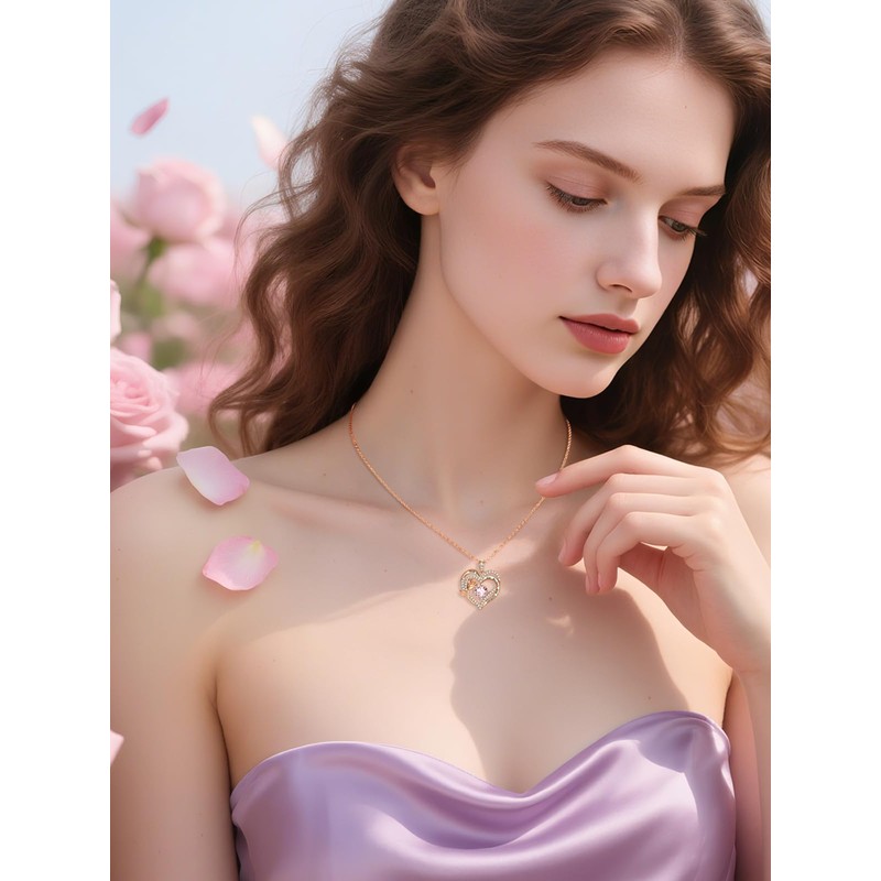 JIYVY32 Rose Gold Heart Necklace for Women Rose Heart Pendant Necklaces Anniversary Birthday Jewelry Gifts for Wife Mom Mother Pink Tourmaline Necklace October Birthstone Necklaces