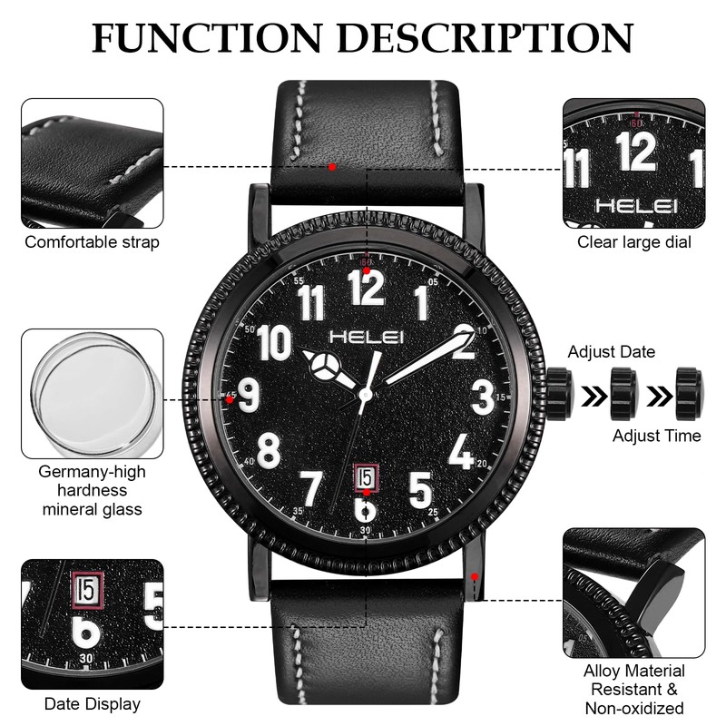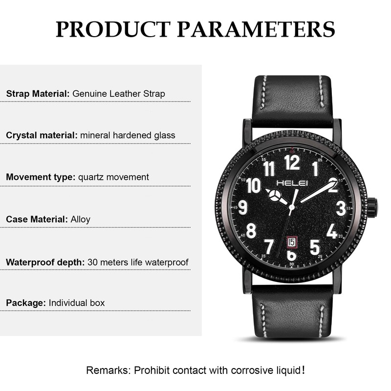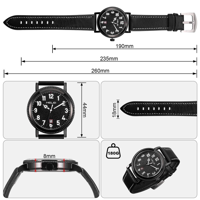 - The dial is made of toughened glass with a leather strap, making the men's watch durable, comfortable and textured.