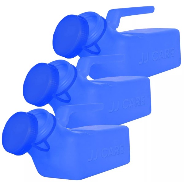 JJ CARE Screw Cap 1000ml Urinal Bottles - Blue, Set of 3