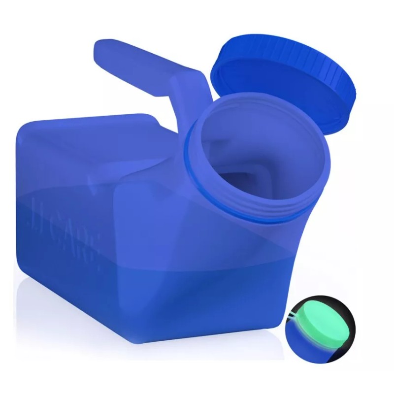 - It glows in the dark – The cap of this robust urinal with lid glows in the dark, so that it can be easily found