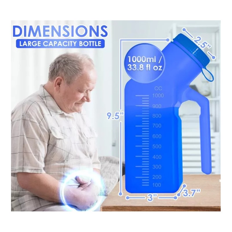 - The right size – With a large capacity of 1000 ml, this pee bottle has an optimal volume for men