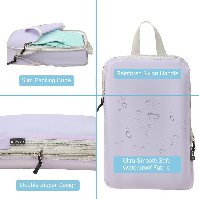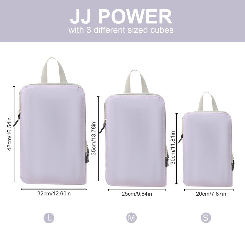 JJ Power 3 Set Lightweight Compression Packing Cubes for Suitcases, Travel Essentials Expandable Packing Cubes Organizer for Carry on Suitcases(Purple)