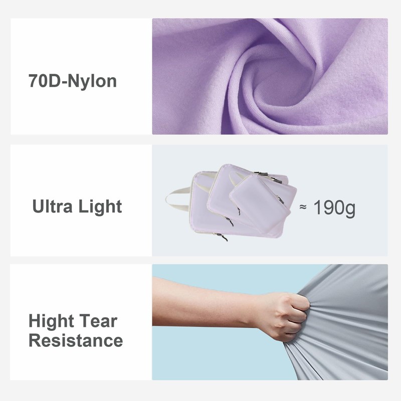 - 【Organized Packing & Space Saving-Save】 up to 50% space by compressing the travel organizers with an external zipper. All zippers we use are SBS zippers, which are smooth and durable, ensuring that the bag can be opened and closed easily.