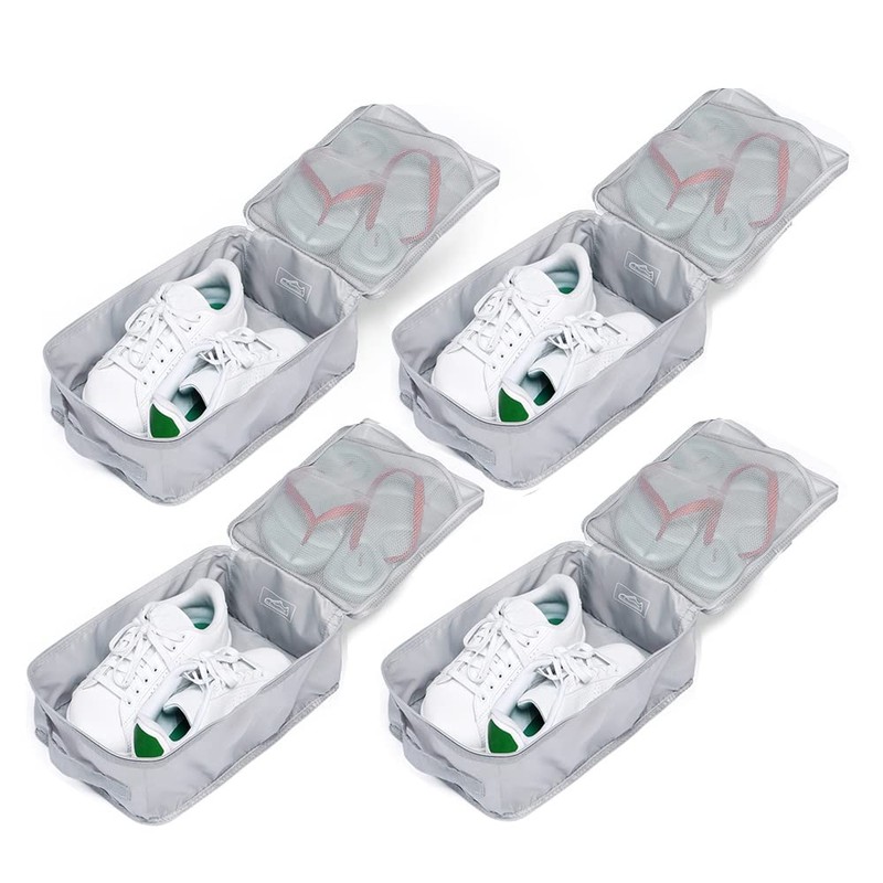 JJ POWER Travel Shoe Bags, Foldable Waterproof Shoe Pouches Organizer-Double Layer, Grey, 4 Packs, Daily Use