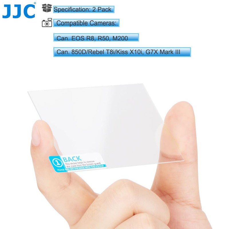 JJC (2 Pack) Tempered Glass Screen Protector for Canon EOS R8, R50, M200, G7X Mark III, 850D/Rebel T8i/Kiss X10i Camera, Ultra Thin, High Hardness, Shatterproof, Bubble-Free