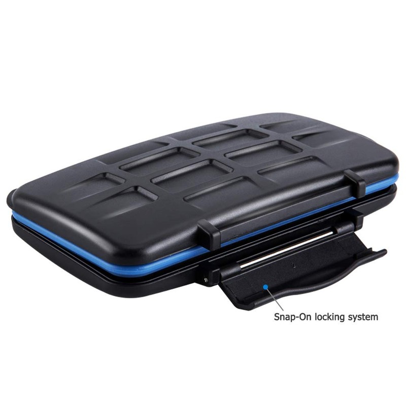 - Waterproof and shockproof: the tailor-made moulded rubber interior has the property of shock absorption. Waterproof silicone sealing ring and durable resin clamp ensure that memory cards are safely protected from weather, water, moisture, dust and anything that could damage your memory cards and data.