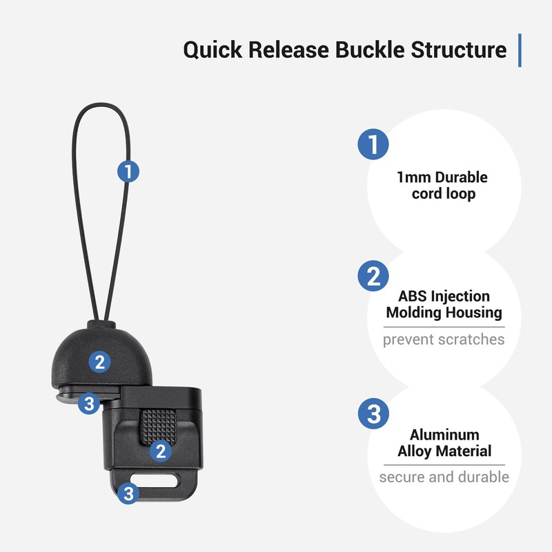 You can attach the adapter by simply sliding it into the buckle slot and detach it by pressing its square button to release, allowing you to swap between adapters quickly. In addition, the upgraded cord loop is more robust with a three-layer construction, reinforcing the strap and showing your degree of abrasion. Please replace the adapter in time if its yellow inner core is visible.