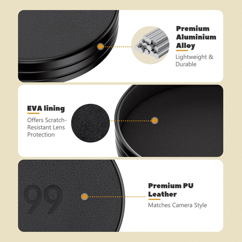 - Easy to put on and take off, no need to rotate. Warm Tips*: the interior EVA is elastic, it's better to put the lens cap on your camera and wait around 12 hours.