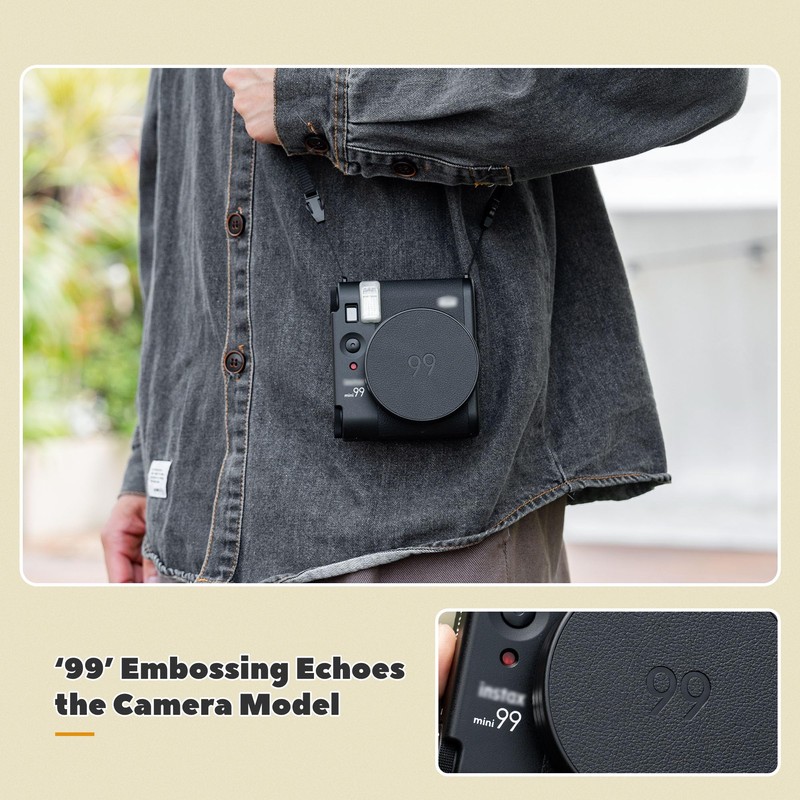 - The black-colored lens protector complements the look of Fujifilm Instax Mini 99 camera, while the ‘99’ embossed on the leather surface. It gives a sleek and stylish touch to the camera.