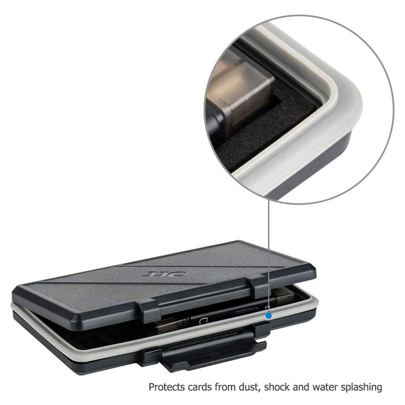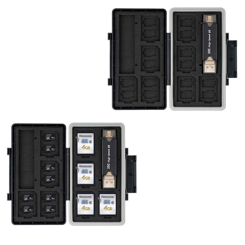 JJC SD Card Storage Waterproof SD Card Box Memory Card Case for 8 SD Cards and 16 Micro SD Cards (with SD/Micro SD Card Reader)