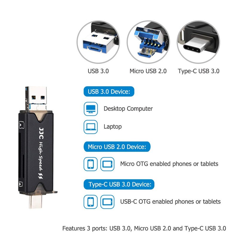 - SD card reader included: the card reader has 3 ports: USB 3.0 + Micro USB 2.0 + Type C USB 3.0, plug and play