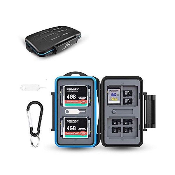 JJC SD Micro SD TF CF Card Case Holder Storage for 8 SD 16 Micro SD & 4 CF Cards Water-Resistant Anti-Shock with Carabiner & Card Removal Tool