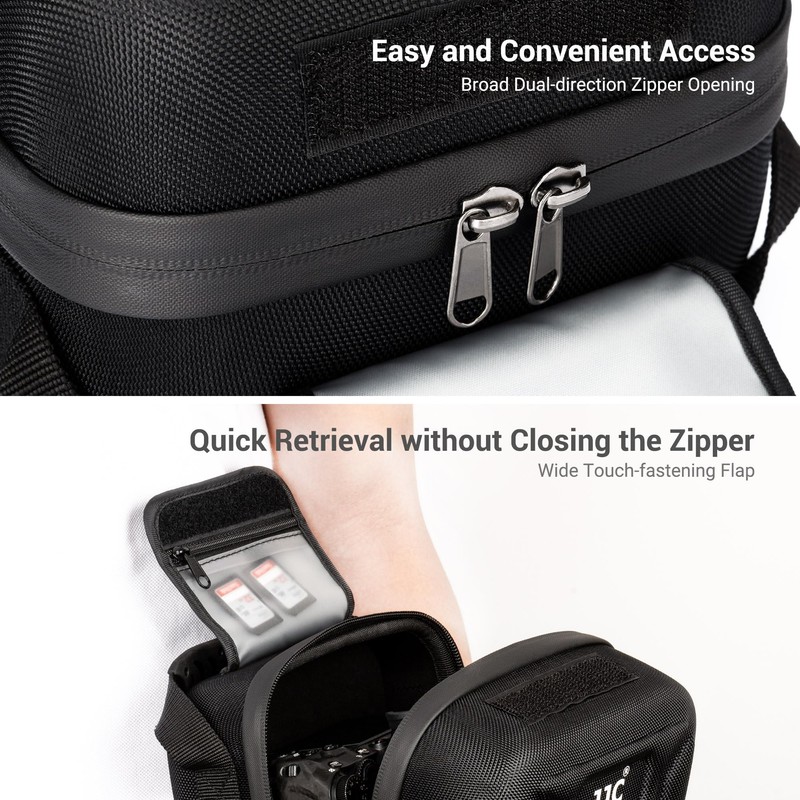 • 【Convenient Access】The zipper closure provides smooth and easy opening and closing of your case. The hook & loop flap can allow easy secure access to your camera while the case is unzipped. a transparent zippered accessory pouch pocket of flap accommodates small items like memory cards, to ensure quick access and organization to essential accessories.