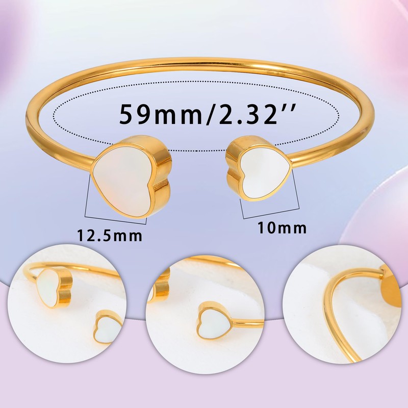 JJDreams Inlaid Shell Bangle Love Heart Open Bracelet Boho Open Crystal Bangle Bracelets Jewellery for Women,White Centre