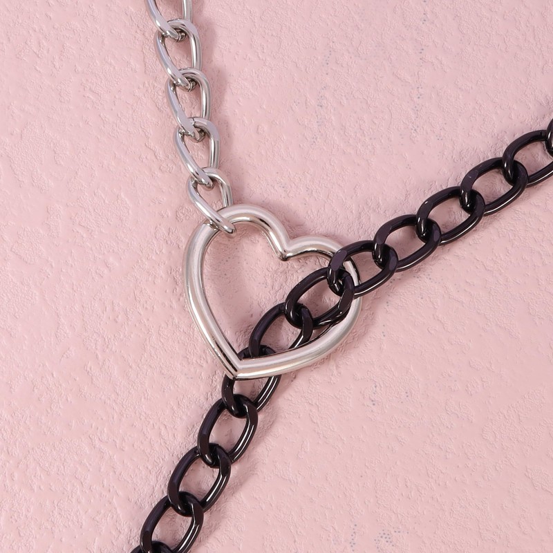 JJDreams Punk Chain Choker O Ring Pendant Necklace Slip Chain Necklace for Women Adjustable Cuban Link Gothic Heart Choker Jewellery Broken Heart, Zinc, No Gemstone