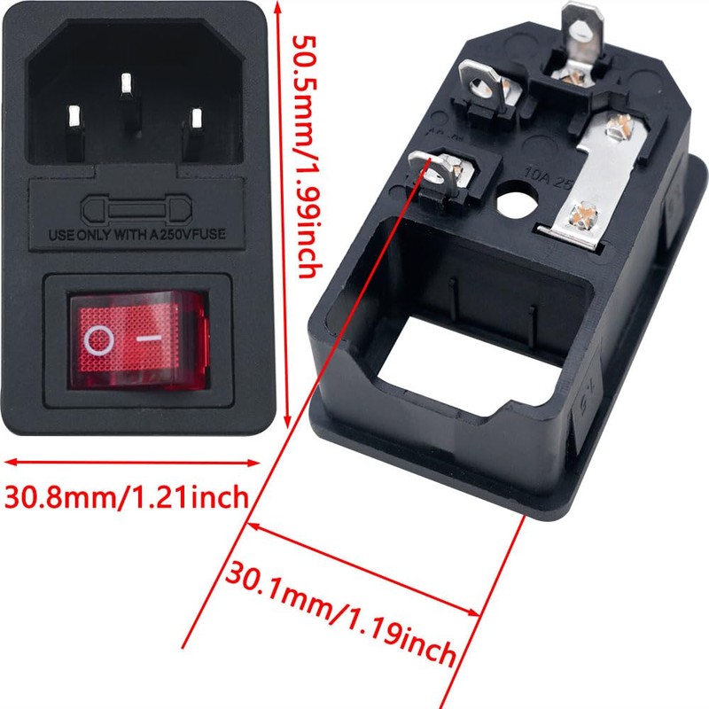 JJHXSM 2PCS 15A 250V Rocker Switch Power Socket Input Module Plug 5A Fuse Switch for CNC Controller Box Computer Chassis Instrument Counters Power Distribution Control