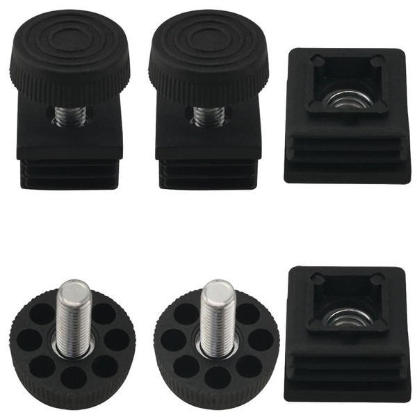 Product Specifications:Square Tube Nut Plugs Adjustable Feet Matching Product Category: Plastic Plugs Product Color: Black Material: high quality plastic Product Size: 25x25mm/0.98x0.98in Installation mode: screw-in type Welding performance: good Package include:4 sets of 25x25mm/0.98x0.98in square tube nut plugs + adjustable feet supporting Product use: internal plugging stainless steel square tube rectangular tube