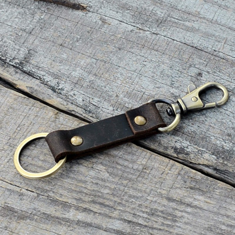 JJNUSA Genuine Leather Car Keychain Key Chain Keyring Family Present for Man and Woman Darkbrown