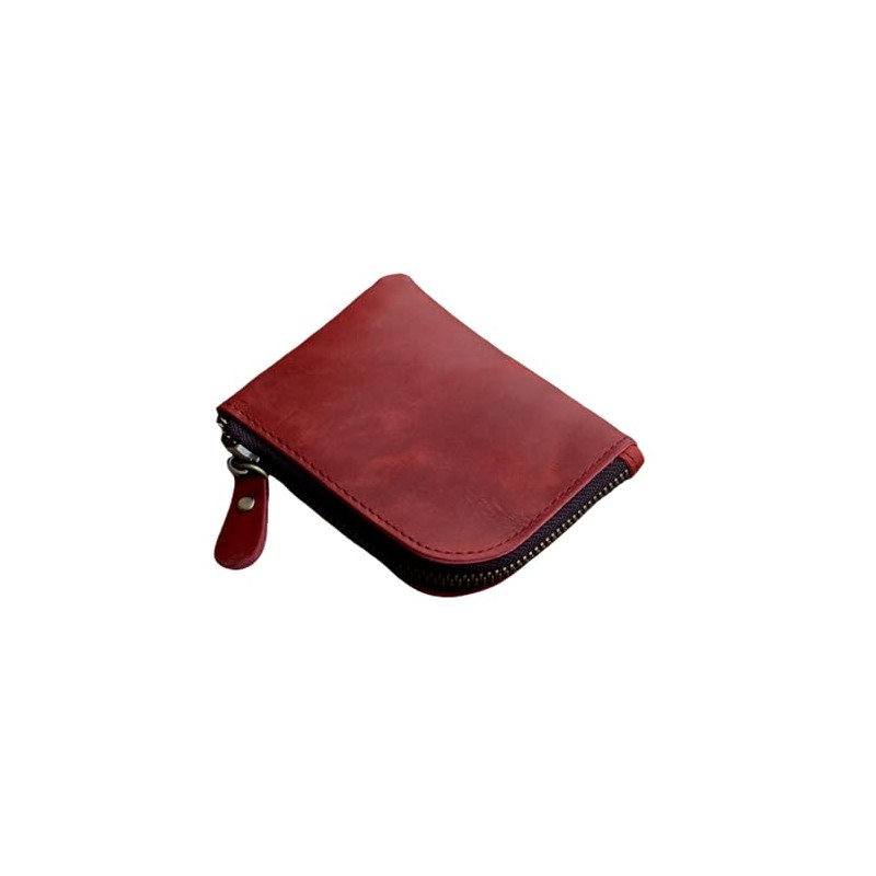 JJNUSA Genuine Leather Zipper Coin Purse Wallet With Key Car Smart Holder, Change Purse, Coin Pouch Holder For Men (Red)