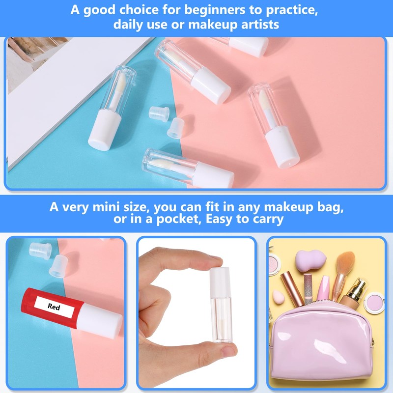 - 【Portable and Travel-Friendly】The lip gloss tube is only 1.2ml and measures 5×1.3×1.3cm, the compact size of these lip gloss containers makes them ideal for taking on the go. Throw them in your purse, pocket, or makeup bag and have your favorite lip gloss ready when you need it.