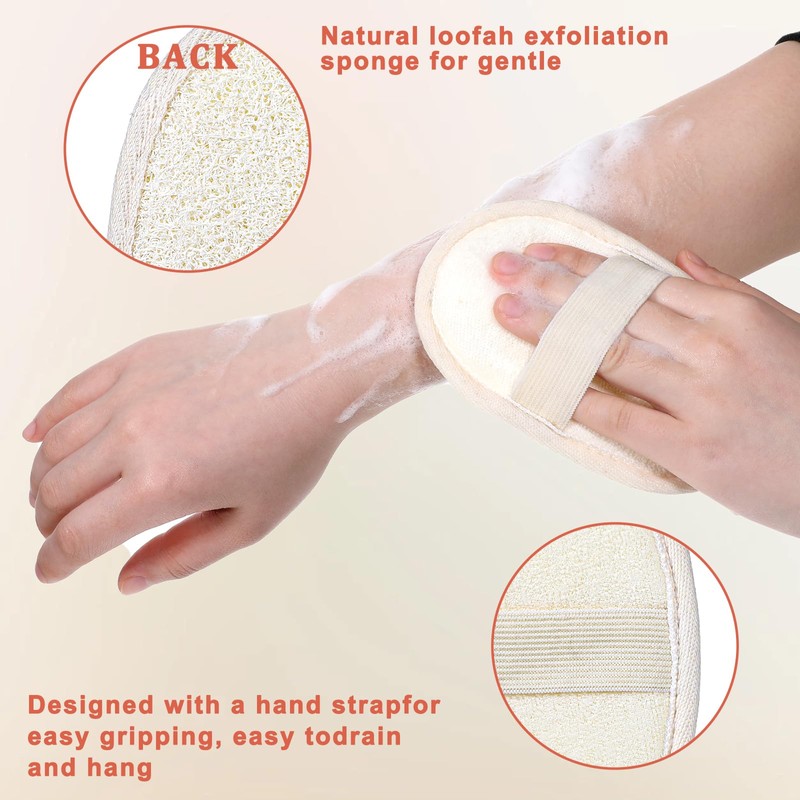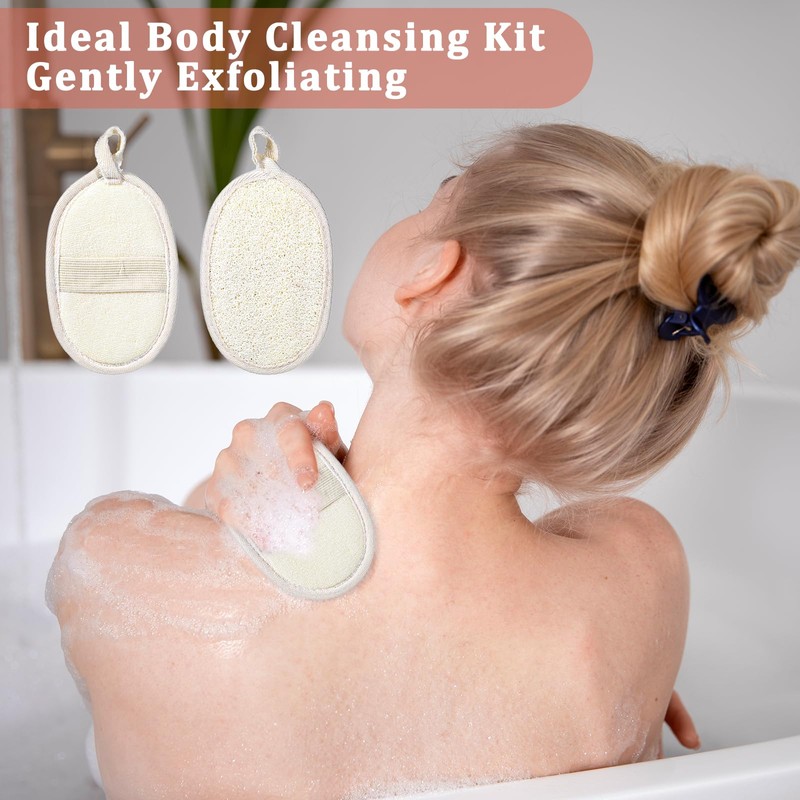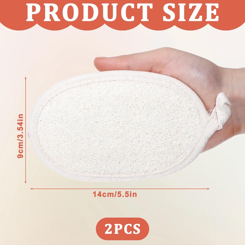 - 【Complete Set】This package includes 2pcs of loofah sponge bath pads, each measuring 14*9cm/5.5*3.54in, with a slight color variation in beige. It is perfect for personal use or as a thoughtful gift for friends and family. Enjoy a spa-like experience at home with our premium bath accessories.