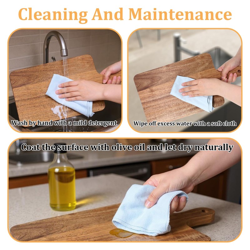 Premium Acacia Wood Construction: These cutting boards are crafted from high-quality acacia wood, known for its durability and beautiful woodgrain patterns. The natural material resists knife scarring and warping, ensuring long-lasting performance in your kitchen
