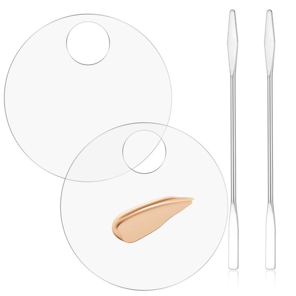 JJUNW 4Pcs Acrylic Makeup Palette, Makeup Mixing Tray Palette with Spatula, Cosmetic Foundation Palette Nail Art Palette for Beauty Salon Color Cream Liquid Foundation Mixing Palette(Round)