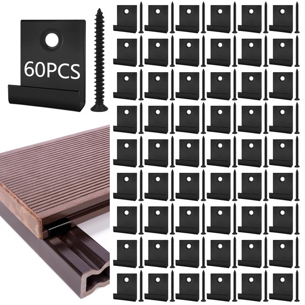 - PACKAGE INCLUDES:The package includes 60pcs composite decking clips and 60pcs black screws, complete accessories to meet your daily needs.
