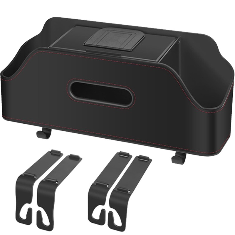 JJWYLTKB Car Back Seat Organizer with 2 Drink Cup Holder and Tissue Box, Tissue Box & Hooks Perfect Storage for Kids and Travel (Black)