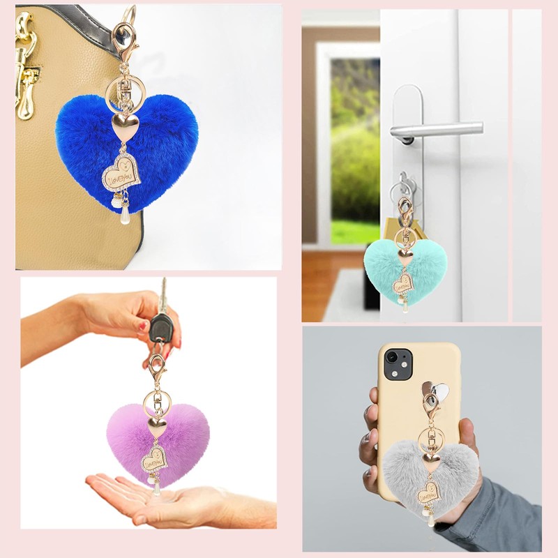 - Pom Poms Keychain Material - Fluffy Heart Shape Keychain, The plush ball is made of soft and fluffy plush material, equipped with a keychain, durable, exquisite and charming, comfortable and cute, adding a touch of style to any accessory, making your item full of charm. The bright colors and cute shapes add a charming touch to your handbag, phone or key, making it easier to find the key in the bag and saving you time and energy.