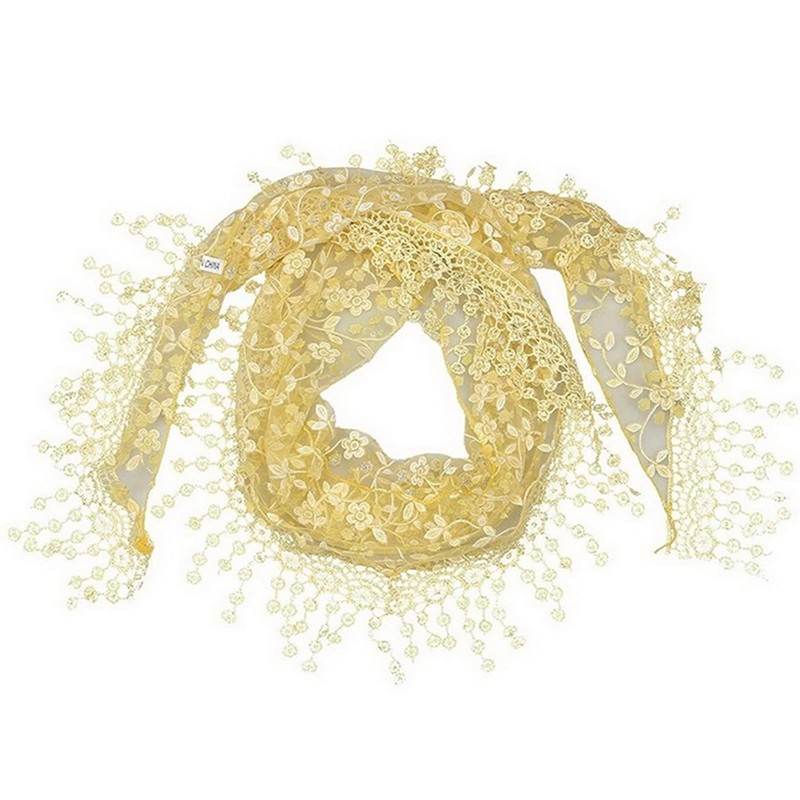- DESIGN - This beautiful scarf features hollow out, tassel, floral and lovely lace and great chance to add sparkle to your everyday style. This scarf can be styled with any type of dress, blouse, sweater, jacket or shirt for a charming look.