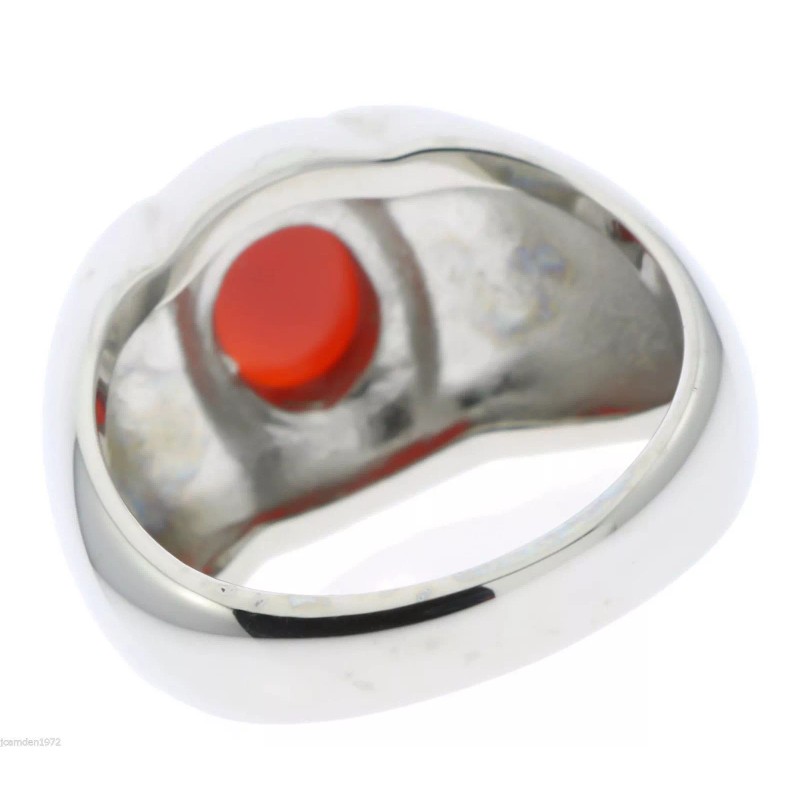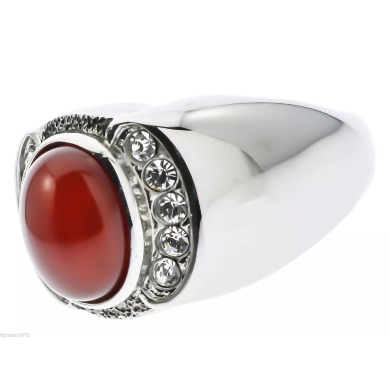 jkc Red Agate Ruby Simulated Stone Cz Accented Stainless Steel Mens Ring Size 10 T23