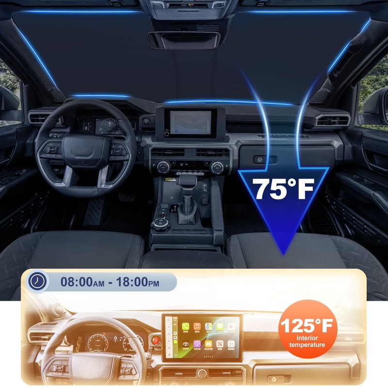 - 【FITMENT】This windshield sunshade is designed for 2024 2025 Toyota Tacoma(4th Gen Tacoma)