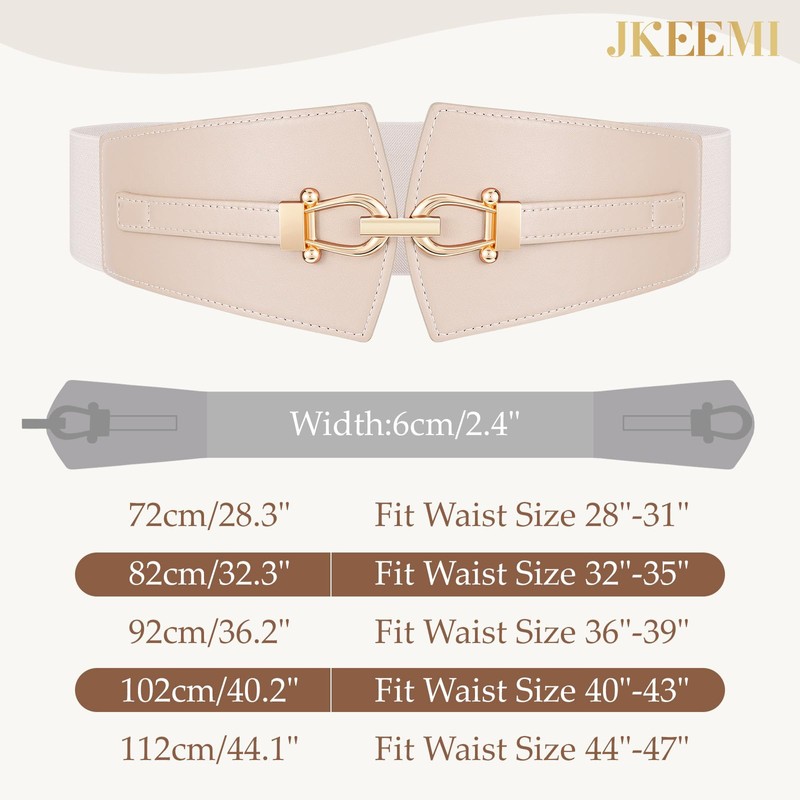 JKEEMI - Cinturones elásticos anchos para mujer, cinturón elástico con hebilla dorada para vestidos y abrigos, Beige, Fit Waist Size 32"-35"