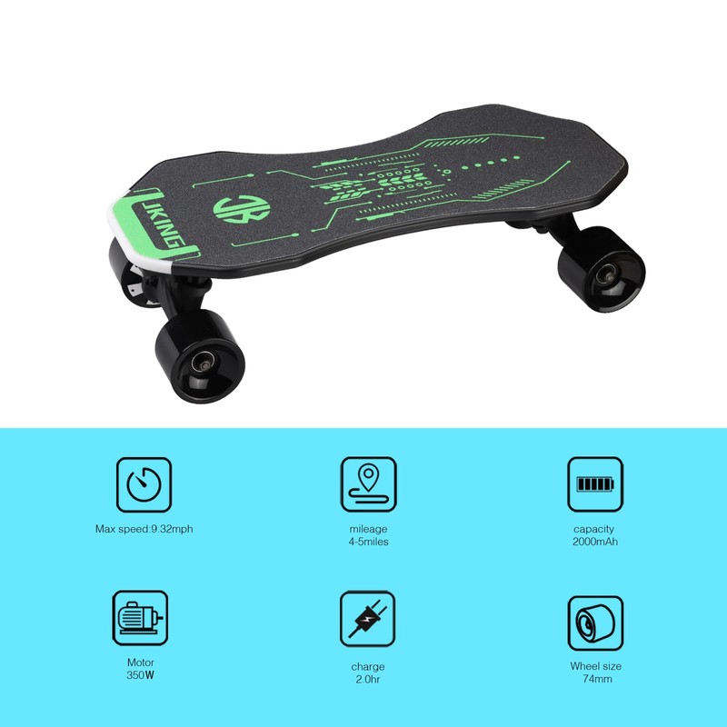 - SOLID AND SECURE - JKing Automatic induction electric skateboard Weigh only 7.7lbs, 7.75Inch Deck Length is built from premium and waterproof PP material, which offers a flex for a smooth ride, and load up to 160lbs,High-density Emery Non-slip and Waterproof Surface Makes you safer while riding on the skateboard,A great choice for commute or street wandering.