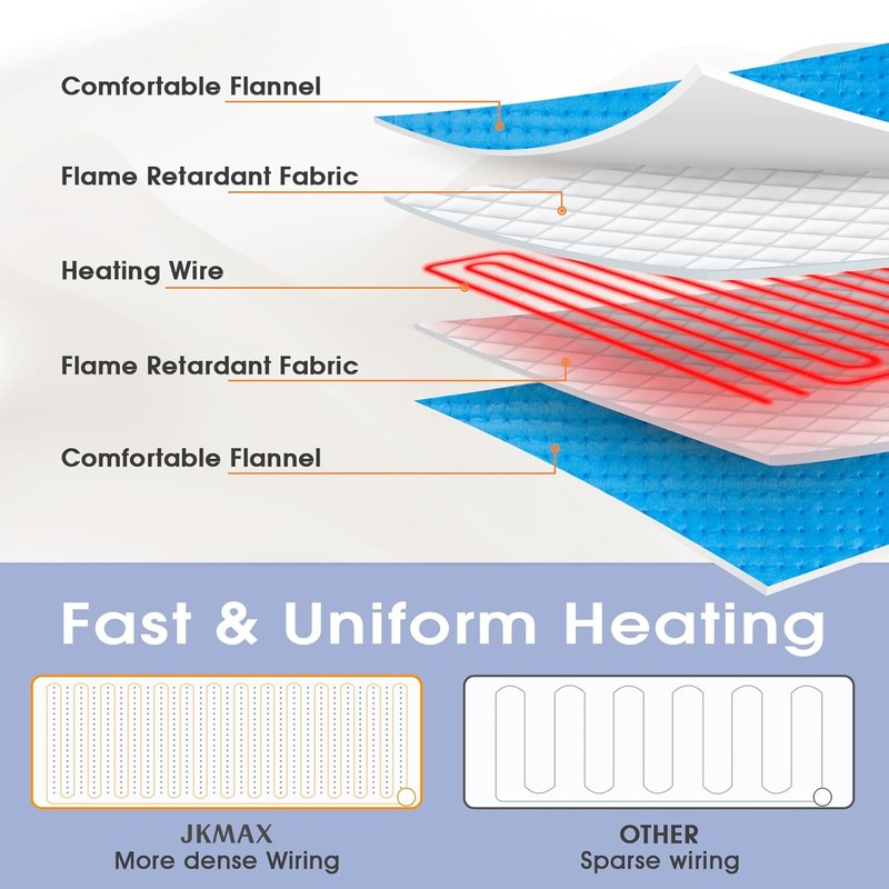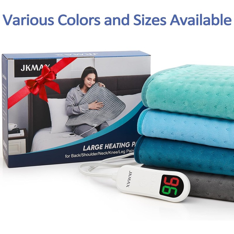 - Extra Long Power Cord: Hate being tied down by a heating pad period cramps with a puny power cord? JKMAX heating pad back got you covered with an 8ft cord that lets you plug in and chill out, whether you're on the bed, couch, or your favorite chair. Use our electric heat pad, no more scouring the room for a close outlet. Just plug it in and enjoy the boost in blood flow, pain relief, and soothing muscle soreness, anytime, anywhere.