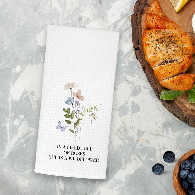JKMBN Wildflower Kitchen Towels, in a Field Full of Roses She is a Wildflower, Motivational Quotes Hand Towels Tea Towels, Floral Dishcloth for Kitchen Bathroom 16x24 Inch