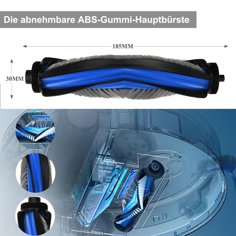 - [ABS-Gummi-Hauptb??rste & Seitenb??rste] Pr?zise und weiche Gummi-Hauptb??rste ist nicht leicht zu verwirren Haare, und kann immer noch seine urspr??ngliche Form und Funktion nach langer Zeit verwenden. Die Seitenb??rsten sind aus weichem und hartem Material hergestellt, das die Reinigungswirkung gew?hrleistet, ohne die M?bel zu besch?digen und die Wandkanten so sauber wie neu zu halten.