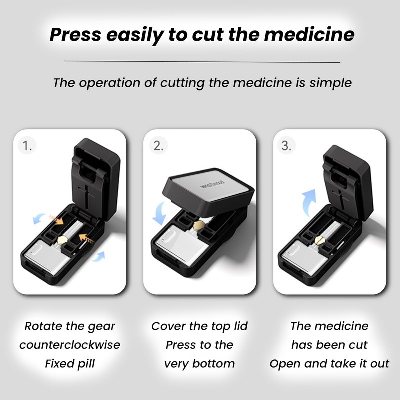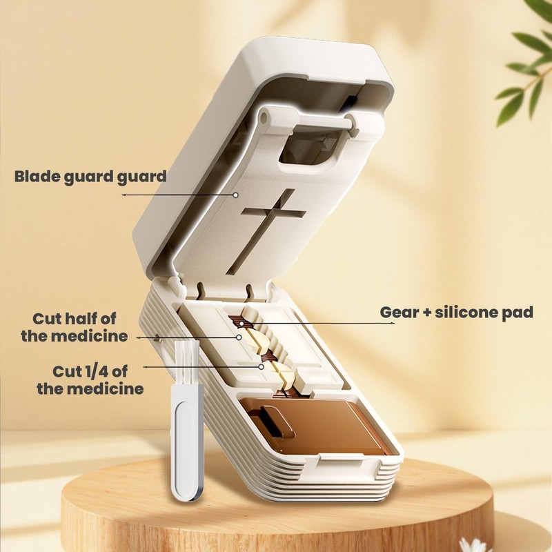- 【Effortless Pill Cutting】 Ultra sharp stainless steel Dual-tooth staggered blades slices pills on anti-vibration silicone pad in one simple press—Make even split and reduce 30% of the possibility of crushing the pill! Unique hidden blade mechanism – No exposed sharp edges, prevents accidental cuts!