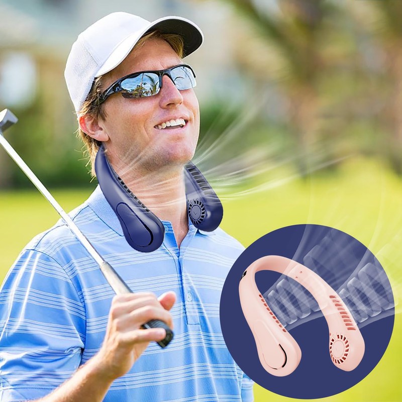 jkuoo Neck Fan, 5-Speed Adjustable, 360° Rotation, USB Rechargeable, Quiet Bladeless Hands-Free Fan for Travel, Office, and Outdoor Use-Blue