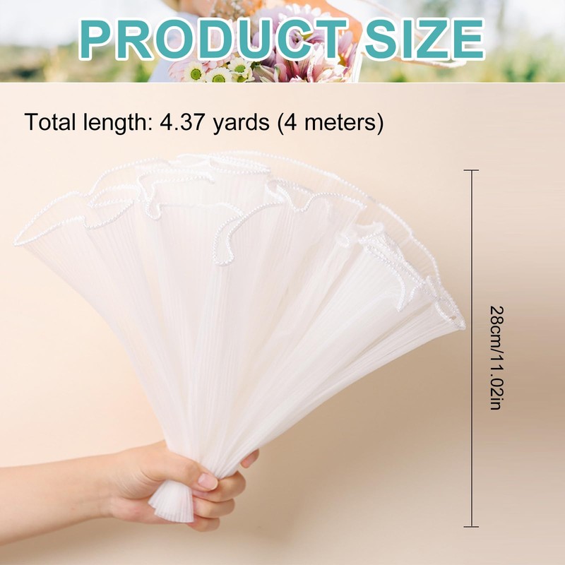 JKYVAA 4m Flower Wrapping Mesh Paper 28cm Wide Pearl Edge Bouquet Packaging Paper Wrinkled Wavy Net Yarn for Valentine's Day Flower Florist Supplies Wedding Birthday Gifts (White)
