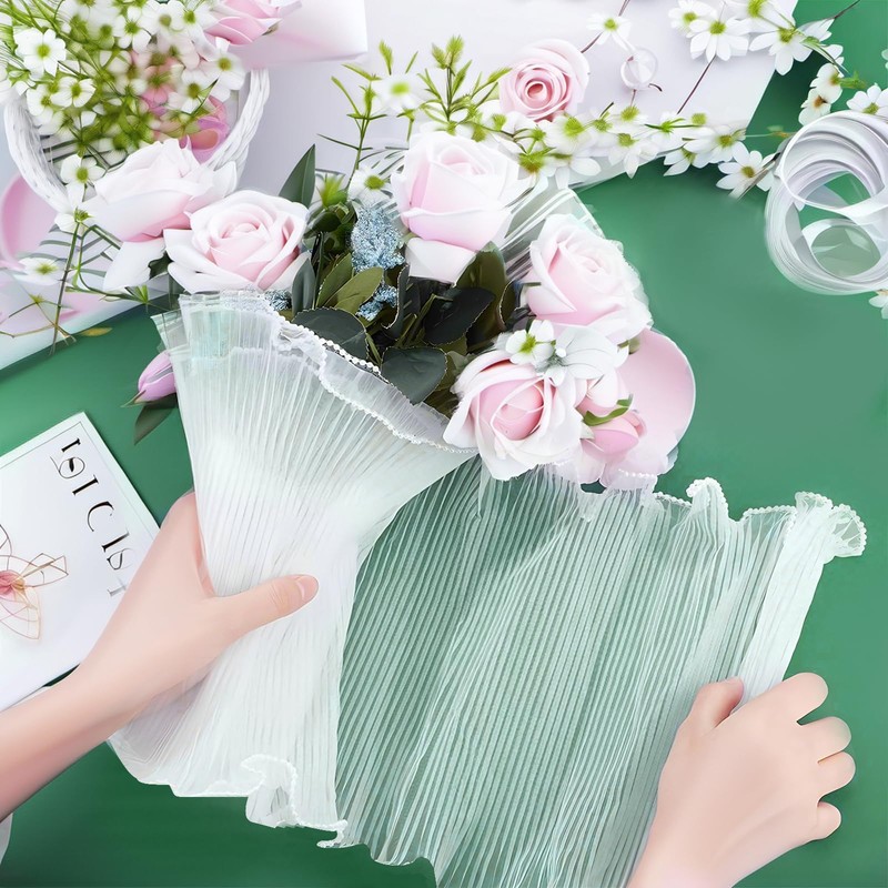 - 【Premium Material】The flower bouquet wrapping paper Crafted from polyester, is smooth and soft to the touch. The wavy lace design and stretchable pleated lines add a unique and appealing touch to bouquet decorations.
