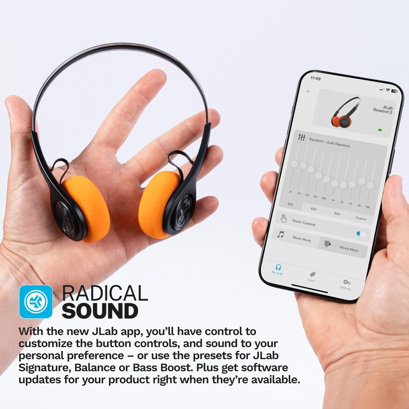 Retrocede en el tiempo mientras avanzas con los auriculares retro inalámbricos Rewind 2. Estos auriculares ligeros ofrecen una mezcla perfecta de diseño nostálgico y funcionalidad moderna. Con Bluetooth Multipoint, conéctate sin esfuerzo a dos dispositivos a la vez, asegurando una transición perfecta entre tu música y llamadas. Actualizado recientemente para que puedas personalizar tu sonido a través de la aplicación JLab, compartir tus canciones favoritas mediante el modo de intercambio inalámbrico o encontrar tu dispositivo con Google.