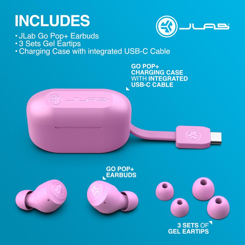 JLab Go Air Pop+ True Wireless Earbuds, In Ear Headphones, Bluetooth Earphones, 35H Playtime Ear Buds, Bluetooth Earbuds with Microphone, USB-C Charging Case, Multipoint, EQ3 Sound, Pink